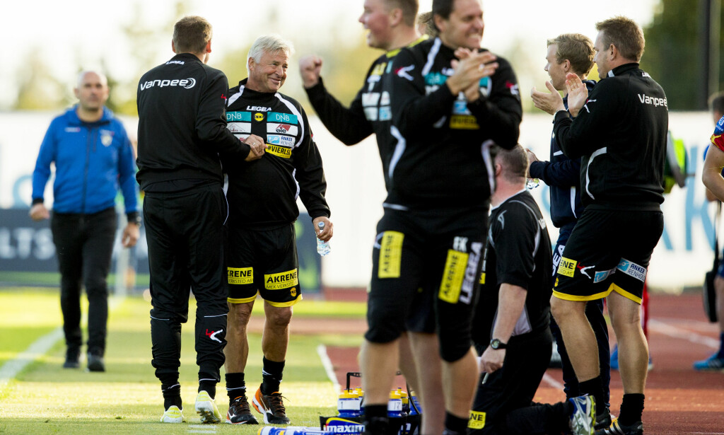 GLAD BENK: Arne Erlandsen og resten av trenerteamet kunne juble over tre poeng på Nadderud lørdag. Foto: Vegard Wivestad Grøtt / NTB scanpix Vis mer