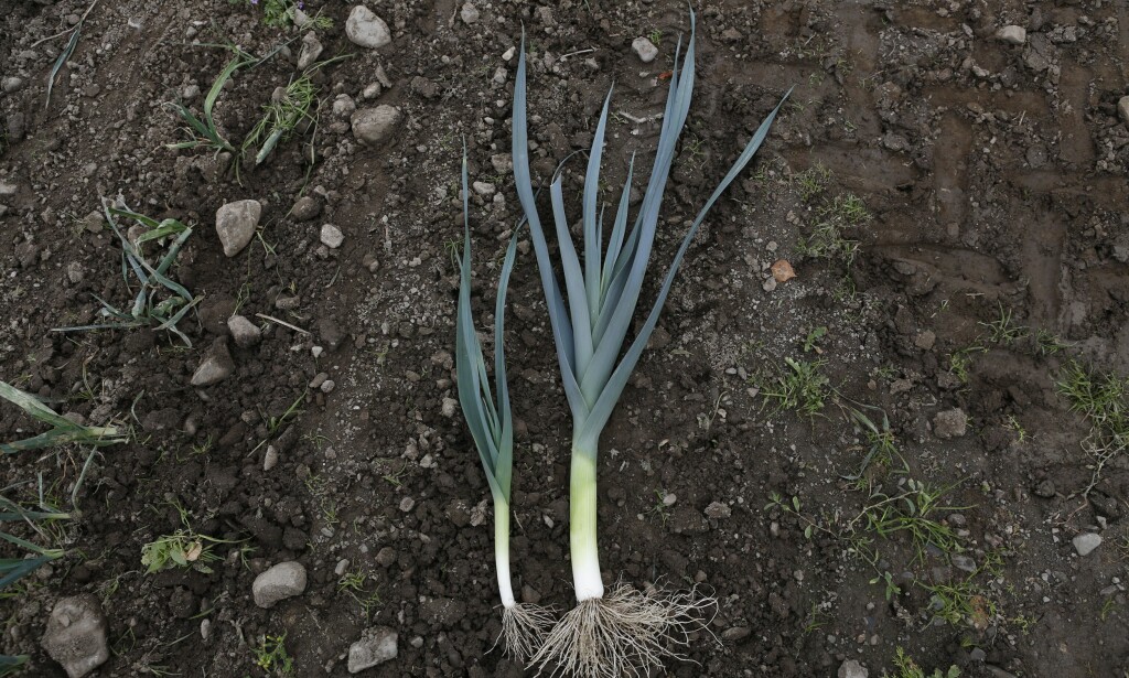 MINIPURRE: Hos bonde Per Odd Gjestvang eksperimenteres det med minipurre. Smaken er mer delikat enn hos større purrer, mener bonden. Foto: KRISTIN SVORTE Vis mer