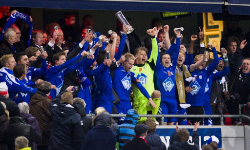 BRAGDEN: Hødds cuppgull i 2012 er klubbens stolteste øyeblikk og fikk Jan Åge Fjørtoft og alle med Hødd-hjerte til å juble hemningsløst på Ullevaal. I går måtte den samme gjengen innse at nedrykket var et faktum. Foto: Vegard Grøtt / NTB scanpix