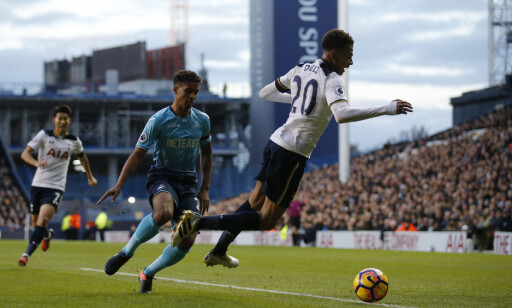 LA FOTEN IGJEN: Dele Alli lot den ene foten henge igjen, slik at dommer Moss trodde at han ble felt av Naughton. Reprisene viste at det ikke var tilfellet. Foto: Scanpix Vis mer