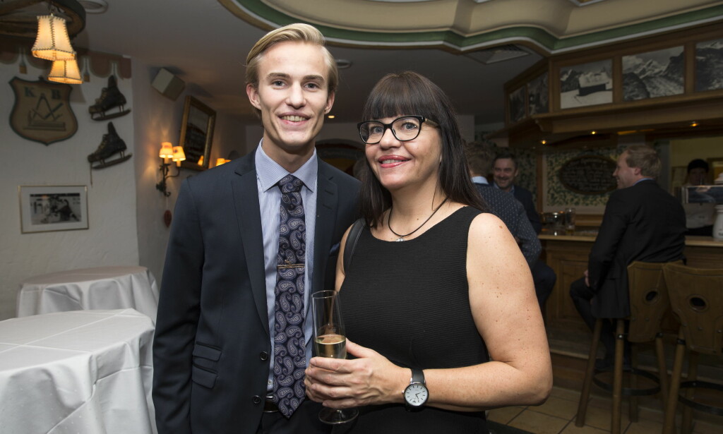 MOR OG SØNN: Daniel-André Tande hadde med seg moren Trude da hopperne feiret nyttårsaften i Garmisch-Partenkirchen. Foto: Terje Bendiksby / NTB Scanpix